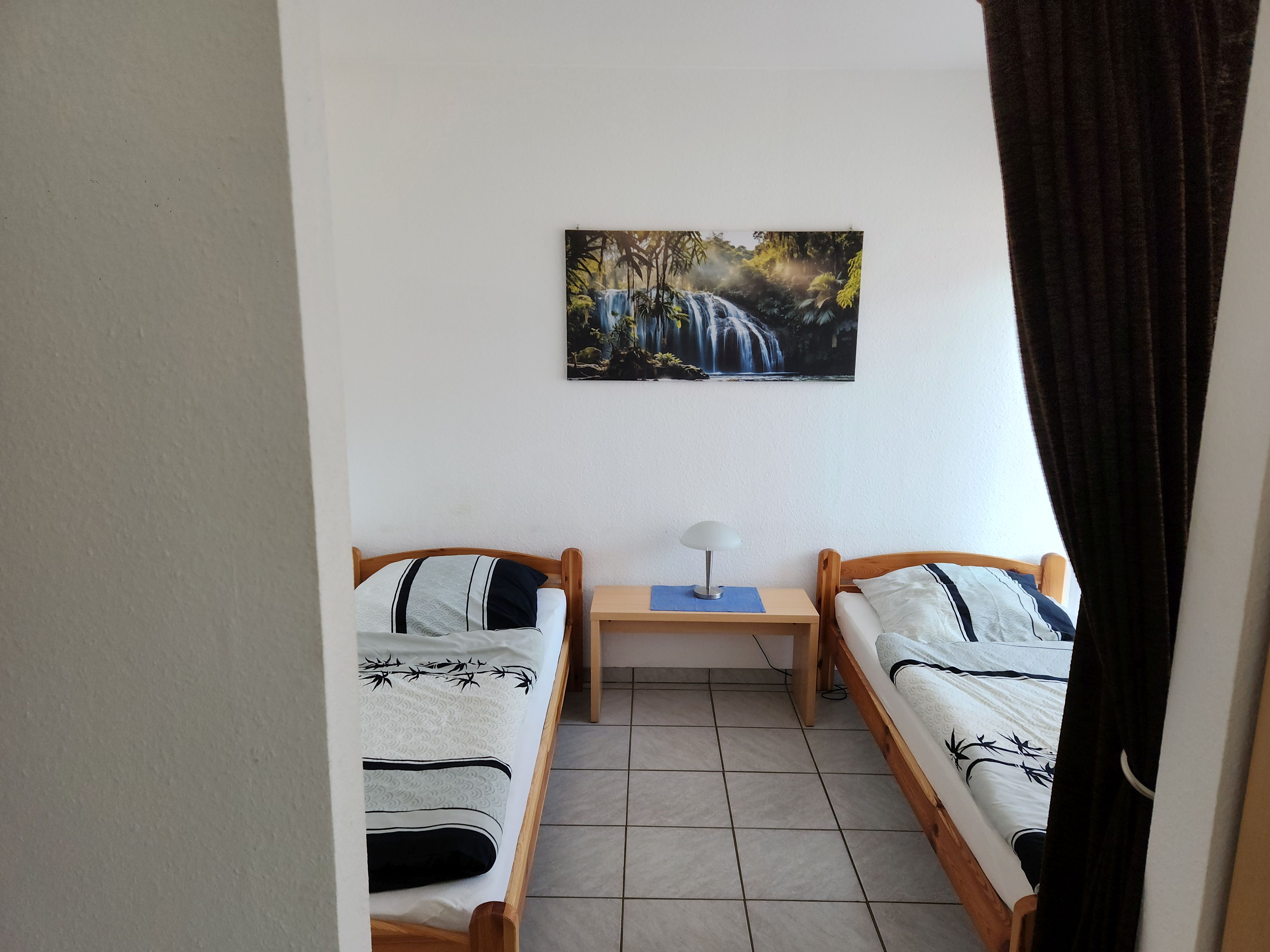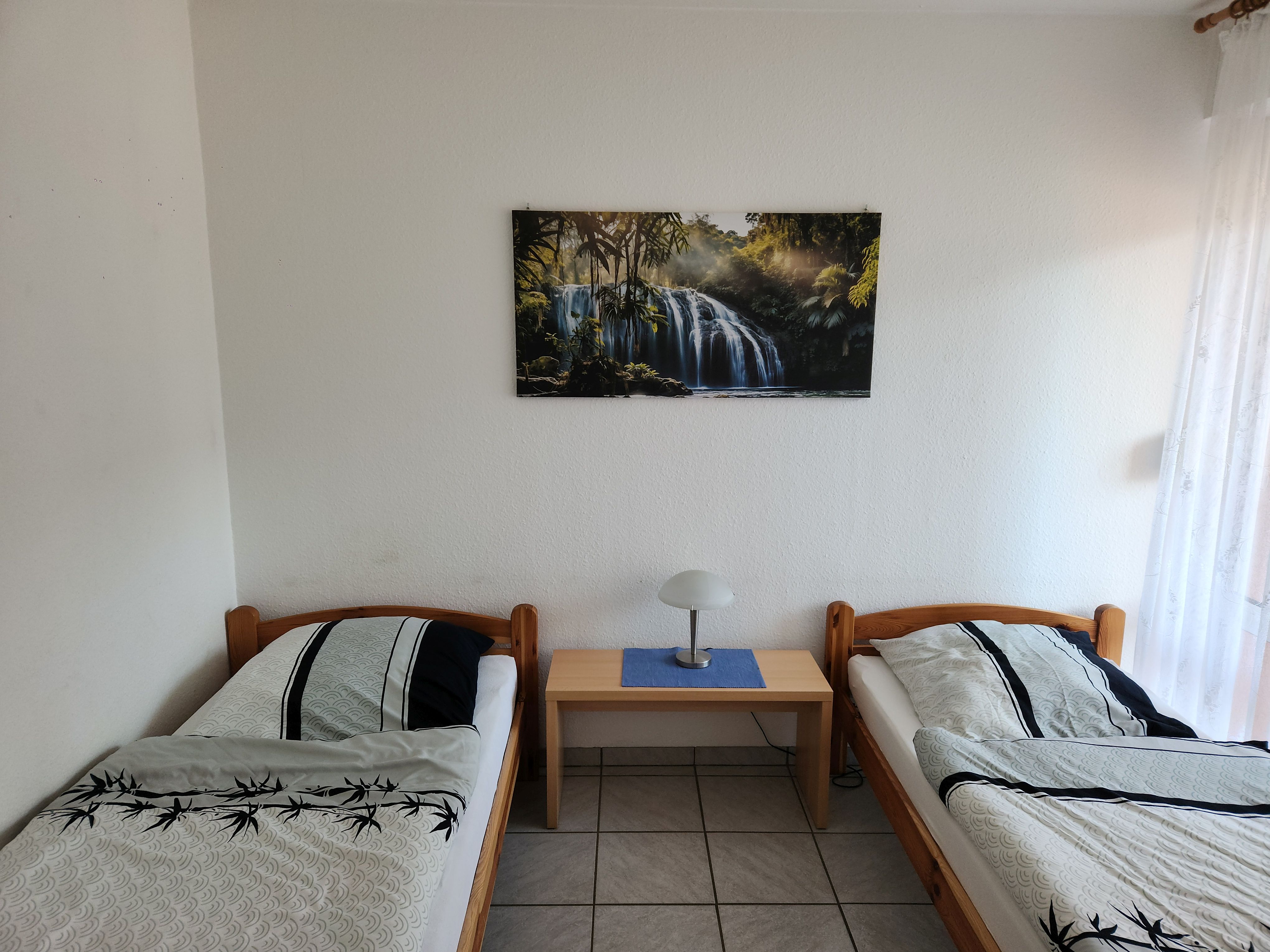 Im Schlafzimmer befinden sich 2 Einzelbetten.