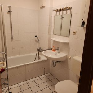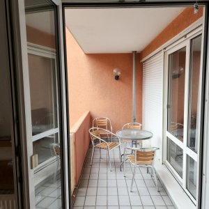 Sie besteht aus 2 Zimmern, Küche (offen), Diele, Balkon und Bad mit Dusche/Badewanne, WC.